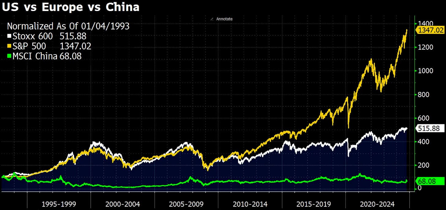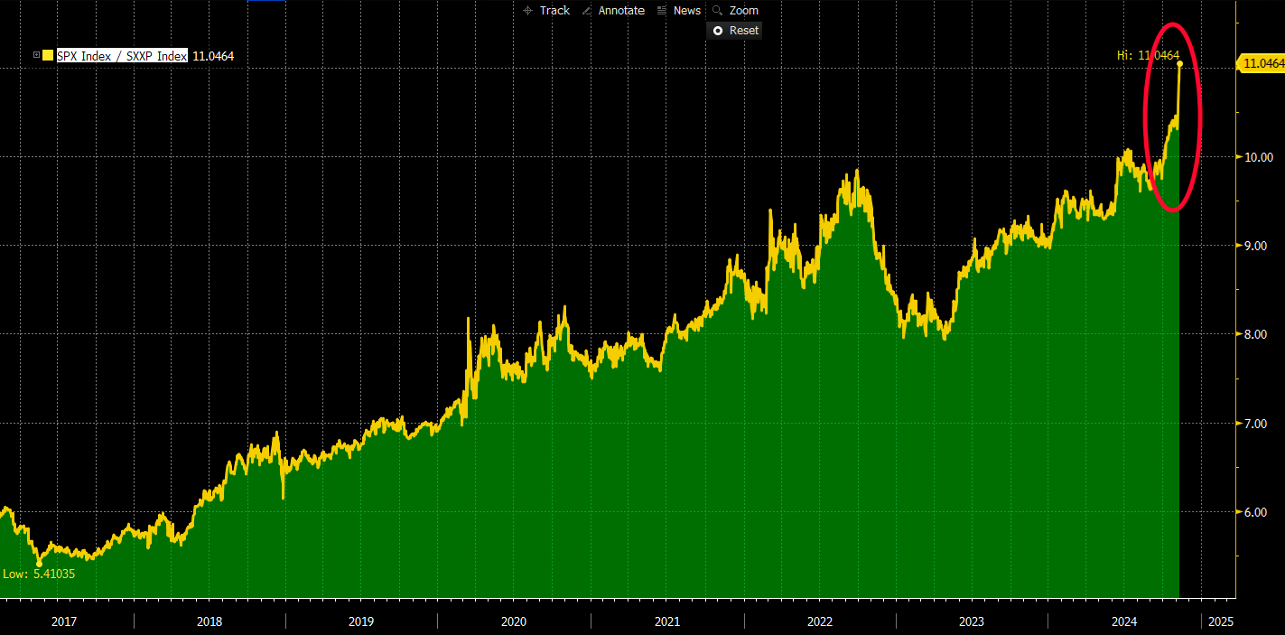 Si un gráfico resume el excepcionalismo de EE. UU. (en un contexto de mercado), es el siguiente: EE. UU. versus Europa desde 2017.
