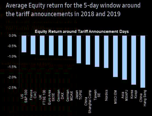 Los índices europeos, junto con los de China y otros mercados emergentes, tienden a ser muy sensibles a los anuncios de aranceles.