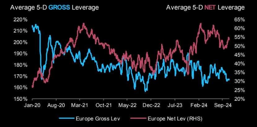 - Los fondos de cobertura redujeron las coberturas macro después de las elecciones en EE. UU., ya que los ETFs cotizados en EE. UU. en posiciones cortas fueron cubiertos en -3.2%. Esta es la mayor disminución semanal desde mediados de agosto, liderada por la cobertura en acciones de pequeña capitalización, gran capitalización y ETFs sectoriales.