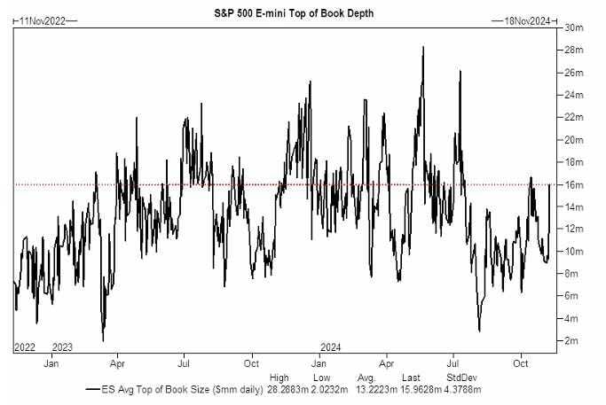 - Estimo aproximadamente $6 mil millones de demanda diaria en promedio ponderado por volumen (VWAP) en los 19 días de trading de noviembre. Esto también puede tener un mayor impacto potencial de demanda durante los días de menor liquidez debido a las vacaciones de Acción de Gracias/vacaciones a finales de mes.