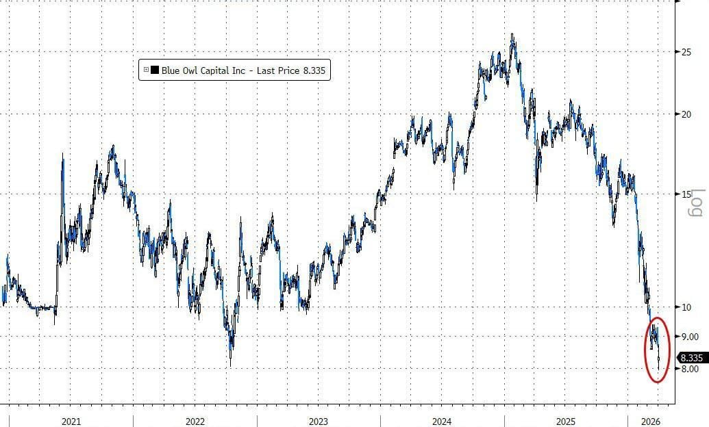 Blue Owl se enfrenta a amenazas existenciales por las demandas de reembolso (cotizando a su nivel intradiario más bajo registrado desde su lanzamiento)...