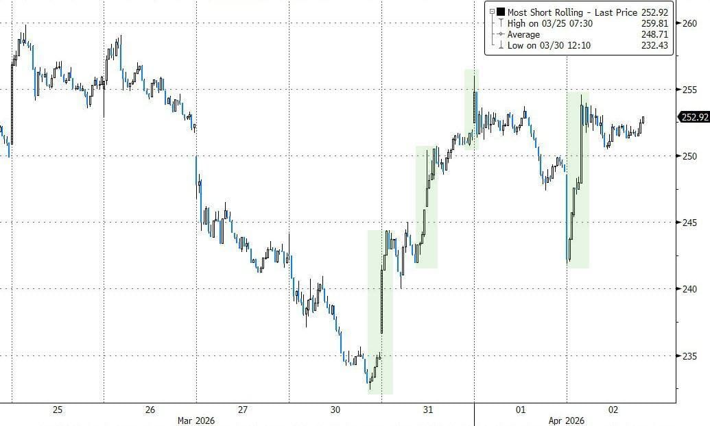 Al concluir la jornada bursátil antes del fin de semana largo, Cameron Crise, de Bloomberg, afirma que la situación actual parece indicar que Estados Unidos se está preparando para poner fin a una campaña militar activa contra Irán, con un aumento gradual de las hostilidades, con la esperanza de que los iraníes lleguen a un acuerdo para ceder el control del estrecho de Ormuz y permitir el libre paso de los barcos.