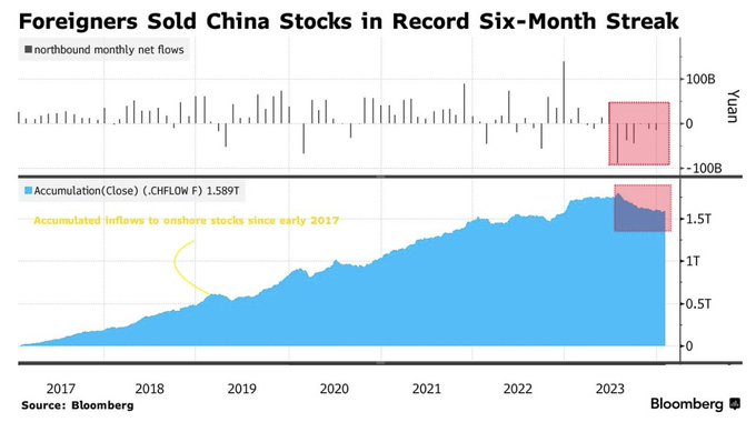 2- Los extranjeros vendieron acciones chinas por sexto mes consecutivo, la racha más larga jamás registrada