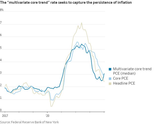 2- La medida de la Fed de Nueva York de la persistencia de la inflación (la tasa de "tendencia subyacente multivariante") subió al 3% en enero desde un 2,6% revisado al alza en diciembre (originalmente 2,3%) Esta lectura es inferior a la del año anterior del 4,7%, pero fue la más alta en nueve meses