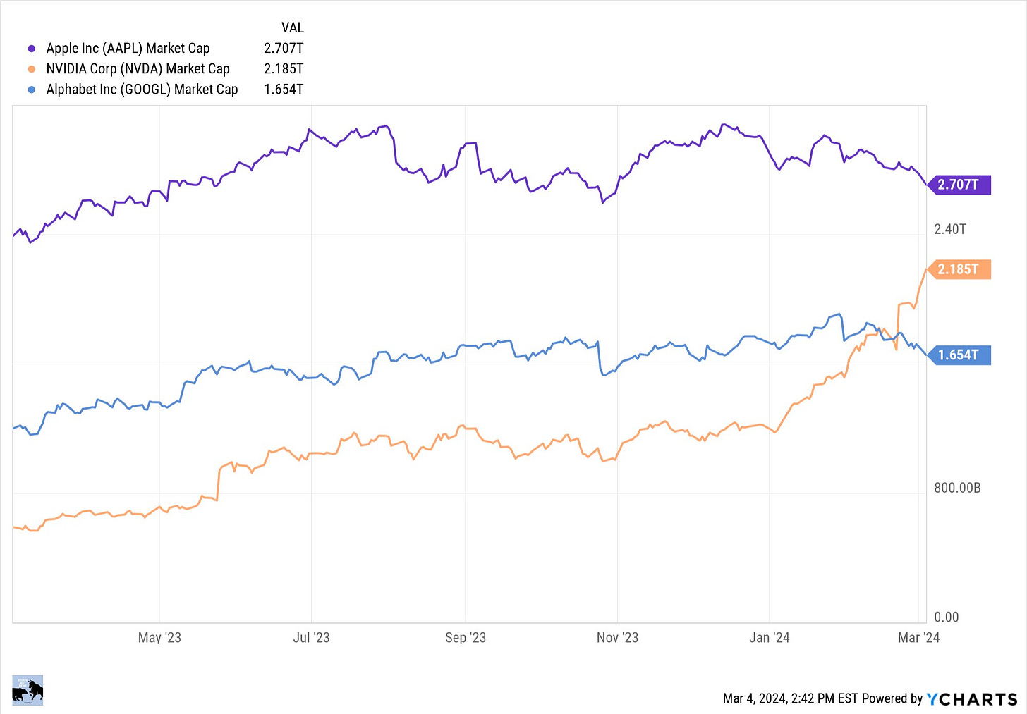 Es ahora más de 500.000 millones de dólares mayor que Google y es alrededor de 500.000 millones de dólares menor que Apple.