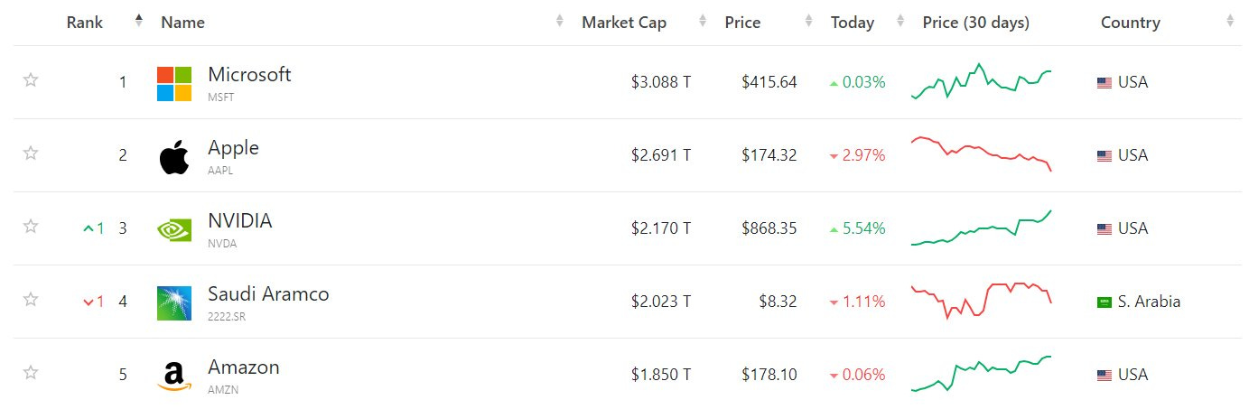 NVDA supera a Aramco y se convierte en la tercera empresa más valiosa del mundo.