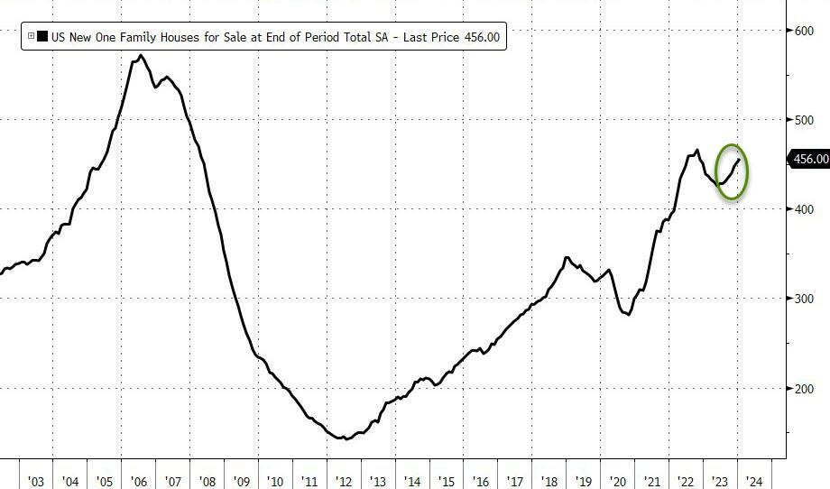 Mientras tanto, había 456.000 viviendas nuevas en venta durante el periodo, lo que representa unos 8,3 meses de oferta al último ritmo de ventas.