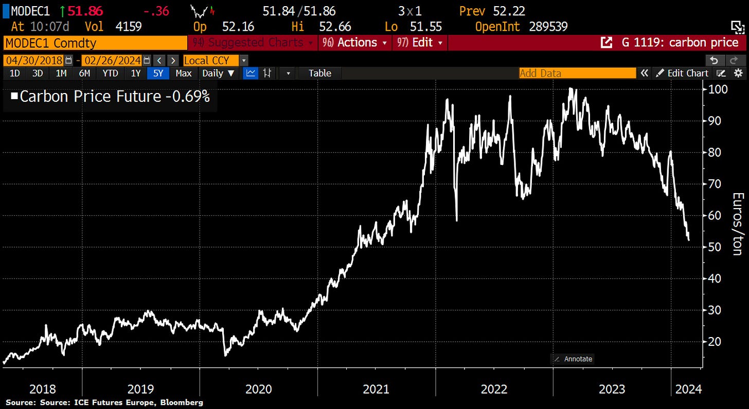 5- La desindustrialización en un gráfico: El precio de los derechos de emisión de CO2 (Carbon Futures) alcanza su nivel más bajo desde el 21 de julio. - Holger Zschaepitz