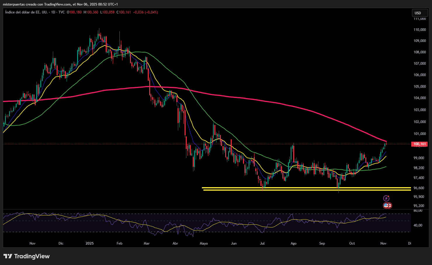 🔴 DXY -0.04% ≈ 100.160