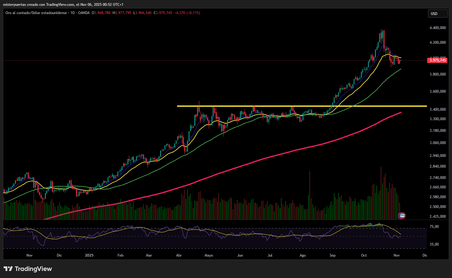 El oro repuntó con fuerza hoy, pero no logró superar los 4000 dólares.