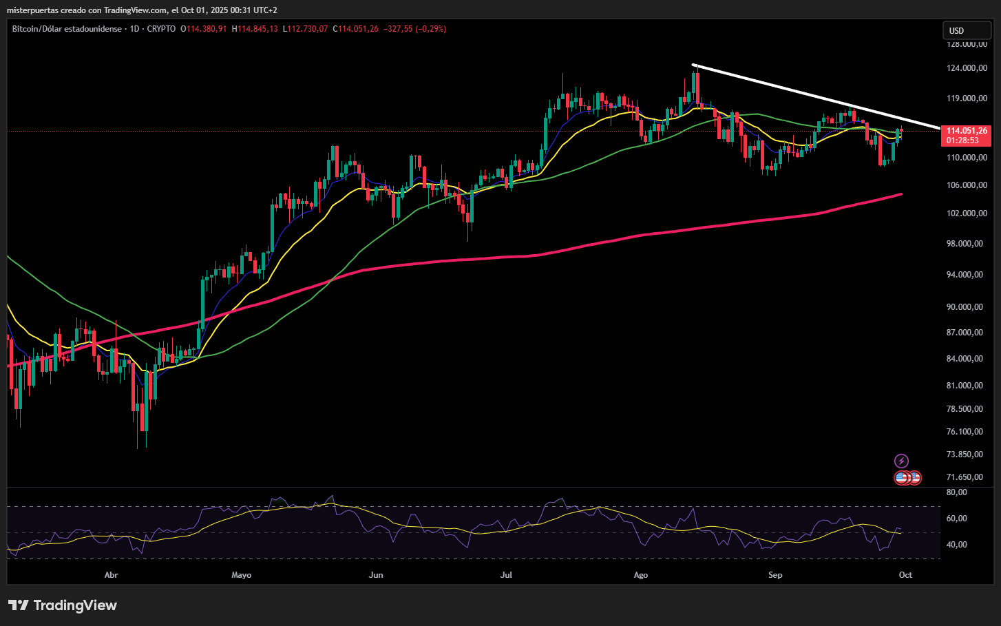 Bitcoin se recuperó durante el mes, superando en los últimos días los 114.000 dólares.