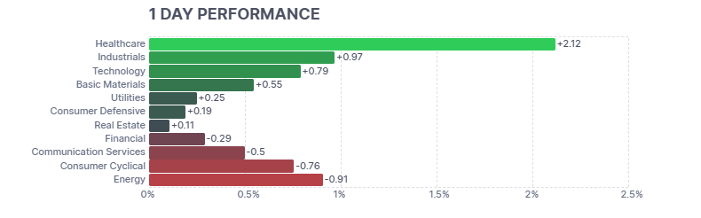 La mayoría de los sectores terminaron en verde: los valores de medios subieron un 1,2% y los de retail un 1,1%. Industriales y salud dieron el mayor impulso al STOXX 600.