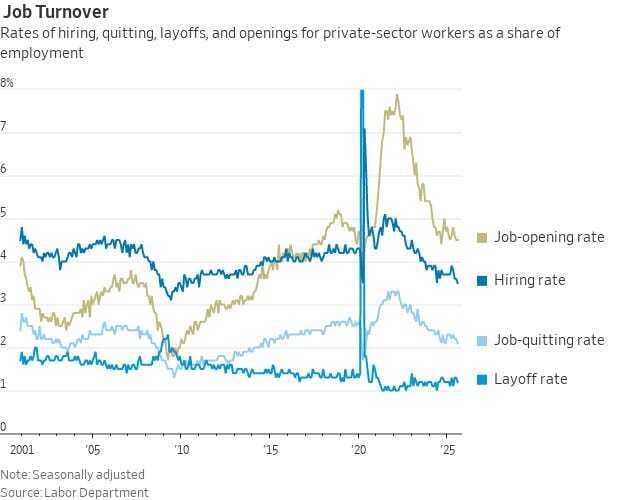 Tasa de contratación (hiring): desciende al 3,5%, también mínimo del ciclo.