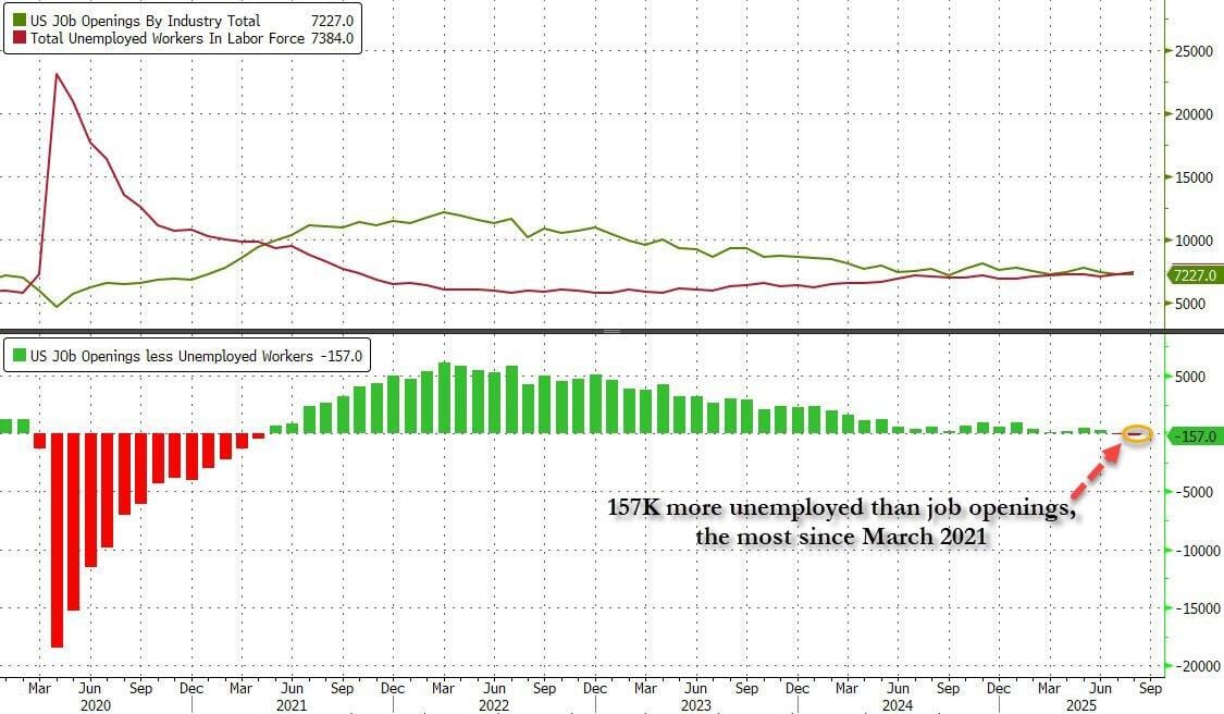Estados Unidos nunca entró en recesión en un período en el que hubiera más vacantes que desempleados (es decir, el mercado laboral estaba limitado por la oferta). Actualmente, sabemos que ya no está limitado por la oferta, sino por la demanda.