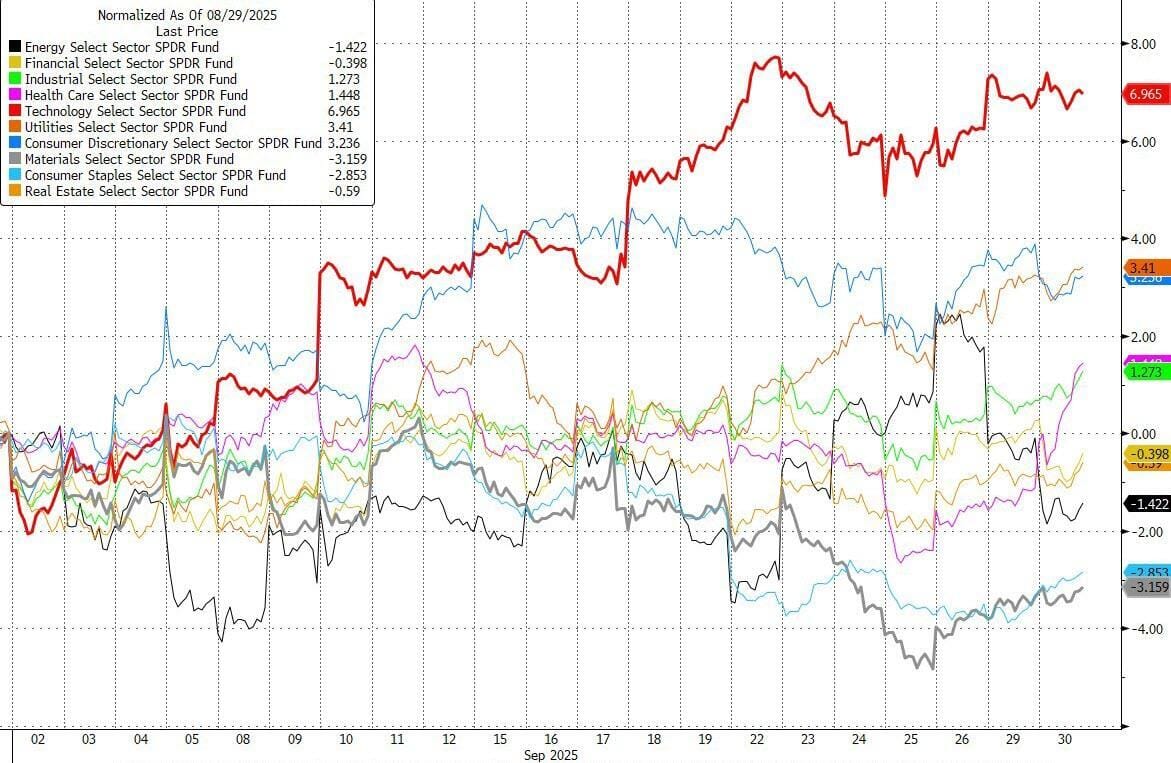 Durante el mes, los materiales se quedaron rezagados en términos generales, mientras que la tecnología tuvo un desempeño significativamente mejor.