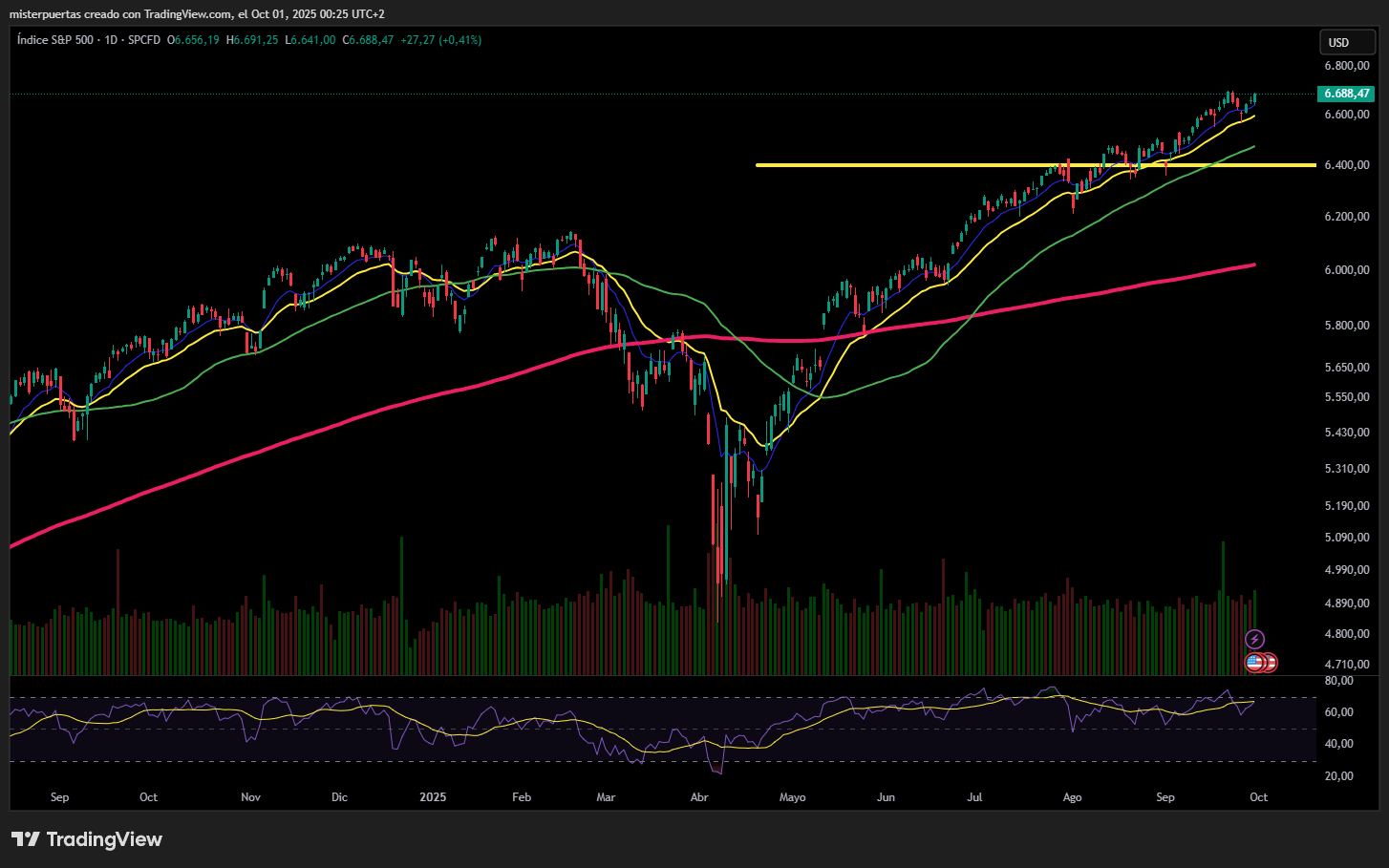 De momento, no me preocuparía, los niveles de ventas están muy lejos, por debajo de los 6.500 puntos en el SPX. A corto plazo, y aunque el potencia alcista pueda ser “acotado”, la tendencia manda.