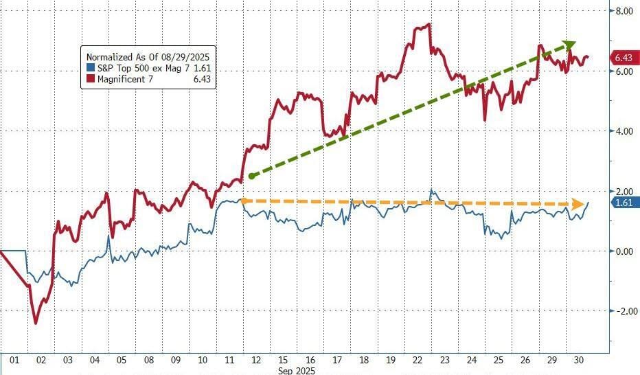 Las acciones de la Mag7 fueron los grandes impulsores, mientras que "el resto" se mantuvieron planas durante toda la segunda mitad del mes.