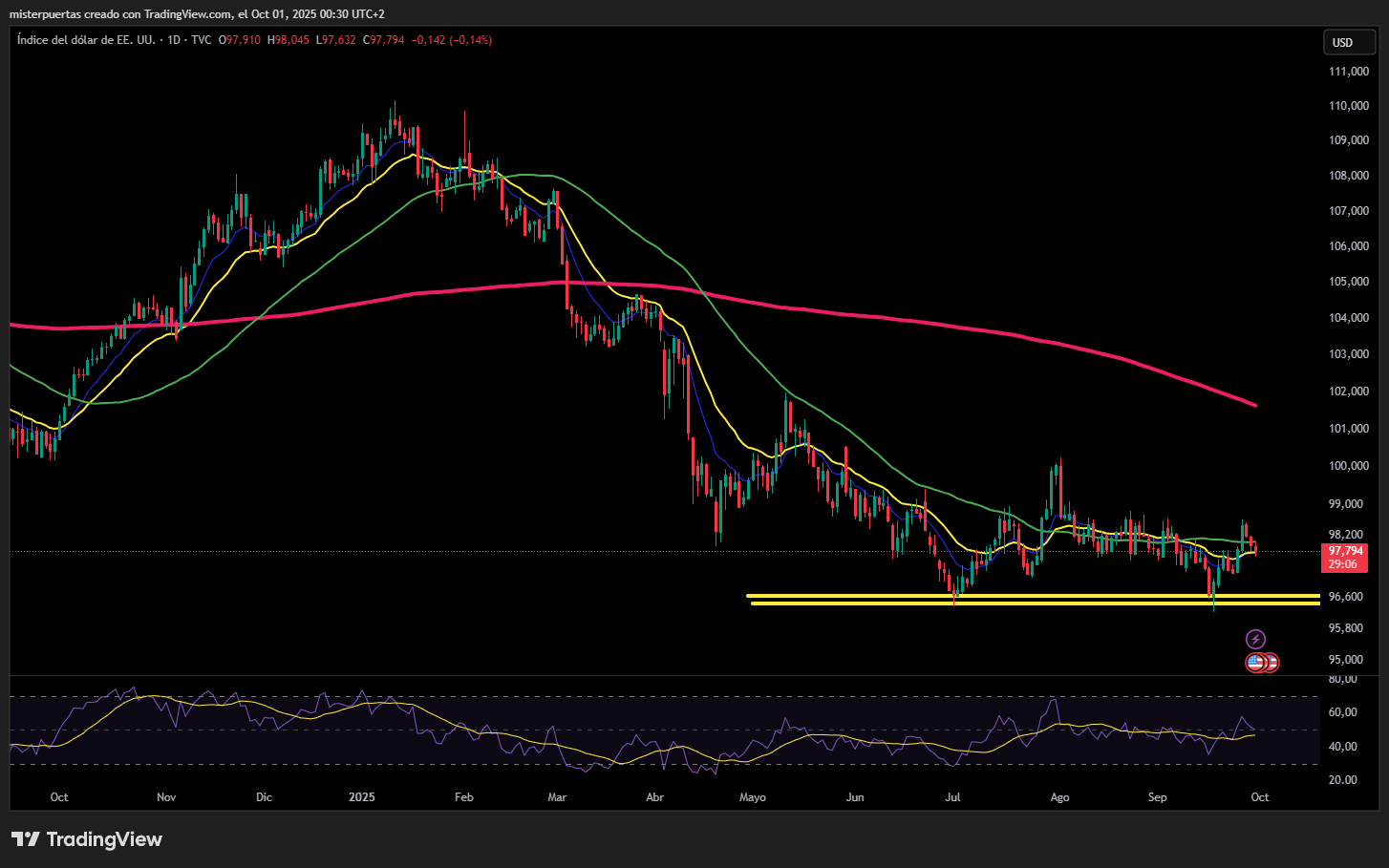 🔴 DXY -0.13% ≈ 97.820