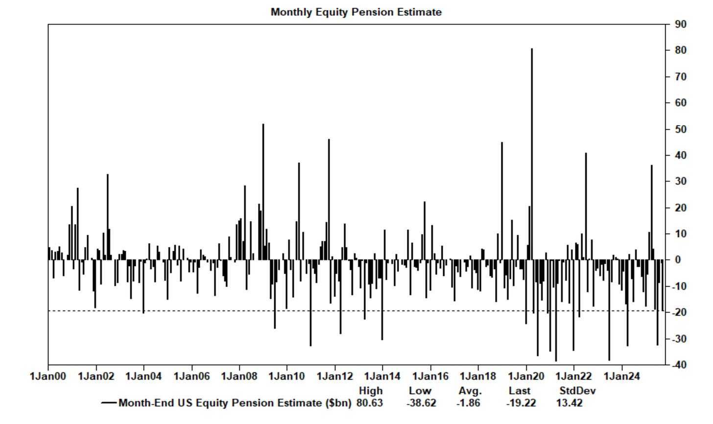 Además, se estima que los fondos de pensiones venderían hoy $19.000 millones en acciones estadounidenses.