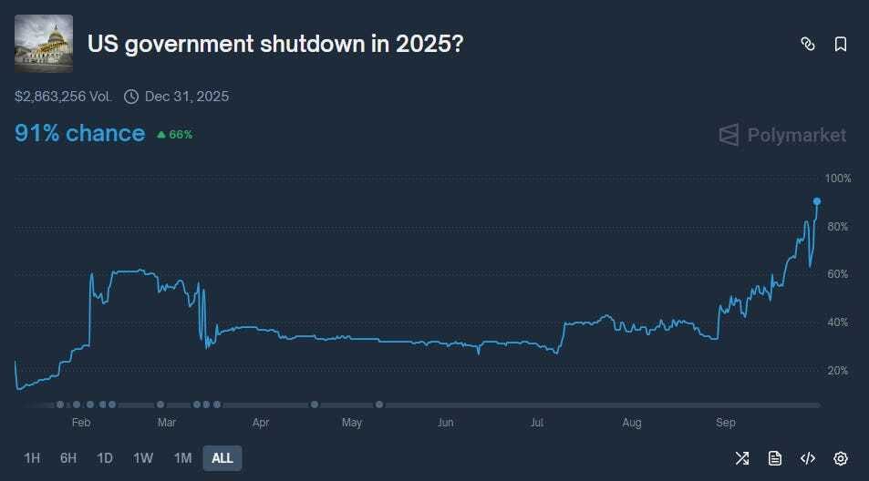 El lunes, el vicepresidente de EE. UU., JD Vance, dijo que un cierre de gobierno era probable debido al estancamiento en las negociaciones presupuestarias con los demócratas. Esto podría retrasar la publicación del crucial informe de empleo, clave para medir la salud económica, previsto para esta semana.