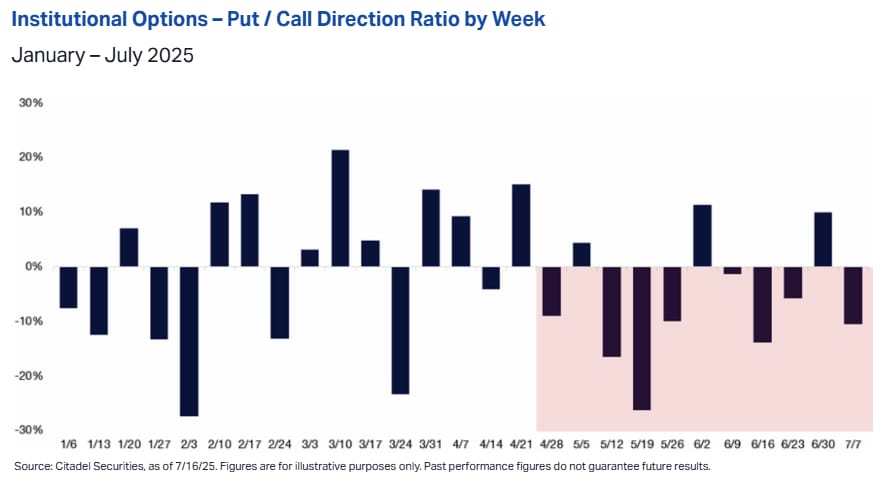 El flujo de opciones institucionales de Citadel Securities es consistente con el posicionamiento general de los inversores de dinero real.