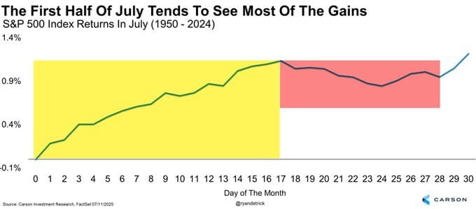 Estacionalmente vemos el pico del rally de julio alrededor del día 17, seguido de una caída.