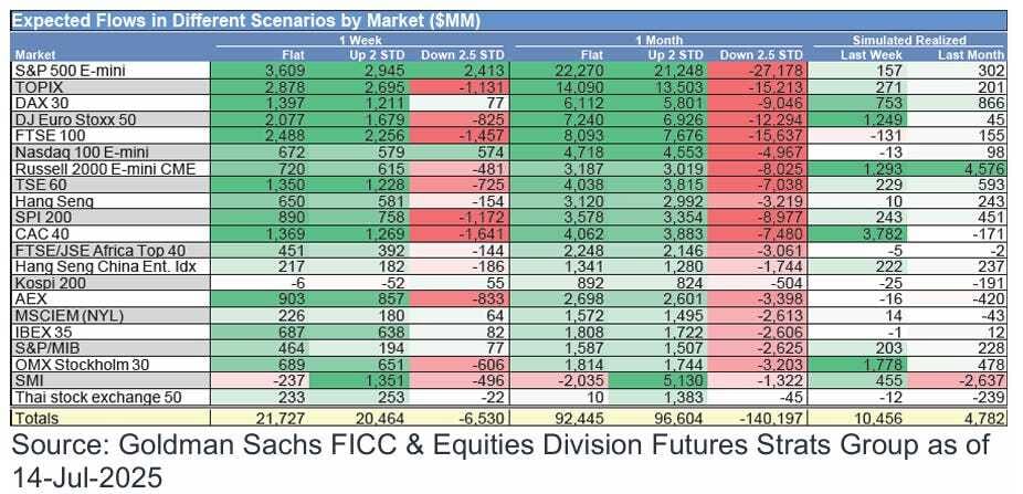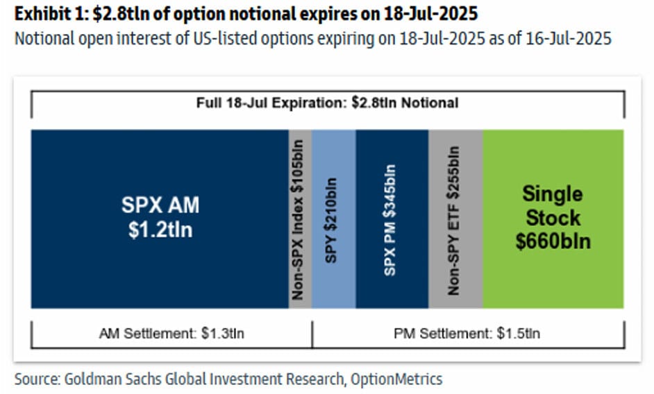 Tenga en cuenta que mañana se estima que más de 2,8 billones de dólares en opciones nocionales vencerán este viernes (18/07), incluyendo 1,5 billones en opciones sobre el S&P 500 (SPX) y 660.000 millones en opciones sobre acciones individuales.