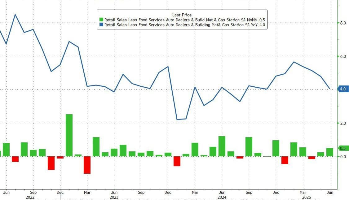 El Grupo de Control, que aporta directamente al PIB, también aumentó un 0,5% intermensual en junio, lo que dejó las ventas un 4,0% más interanuales...
