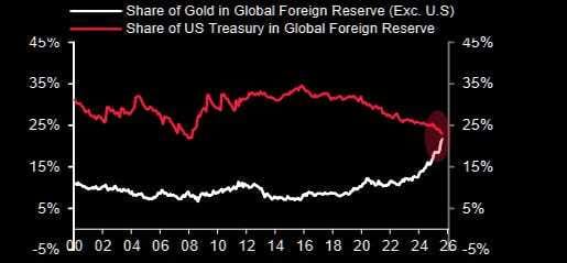 Según GS: El compromiso de los operadores entre el 6 y el 13 de enero mostró compras de oro por valor de +5.700 millones de dólares, lo que representa el mayor volumen semanal desde septiembre.