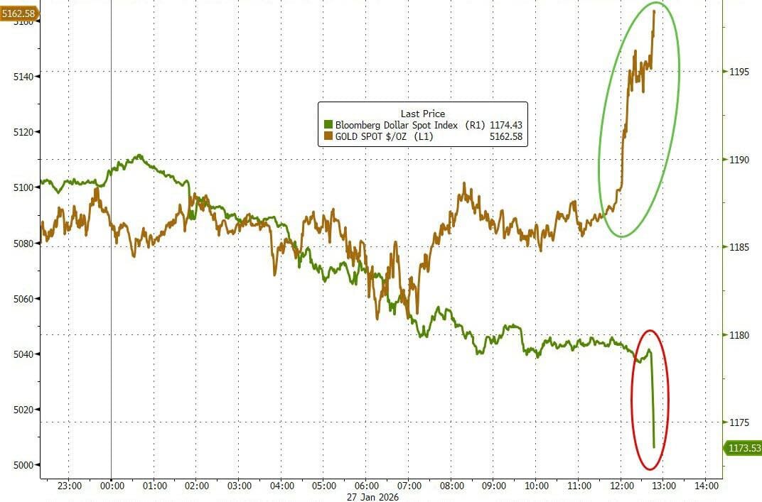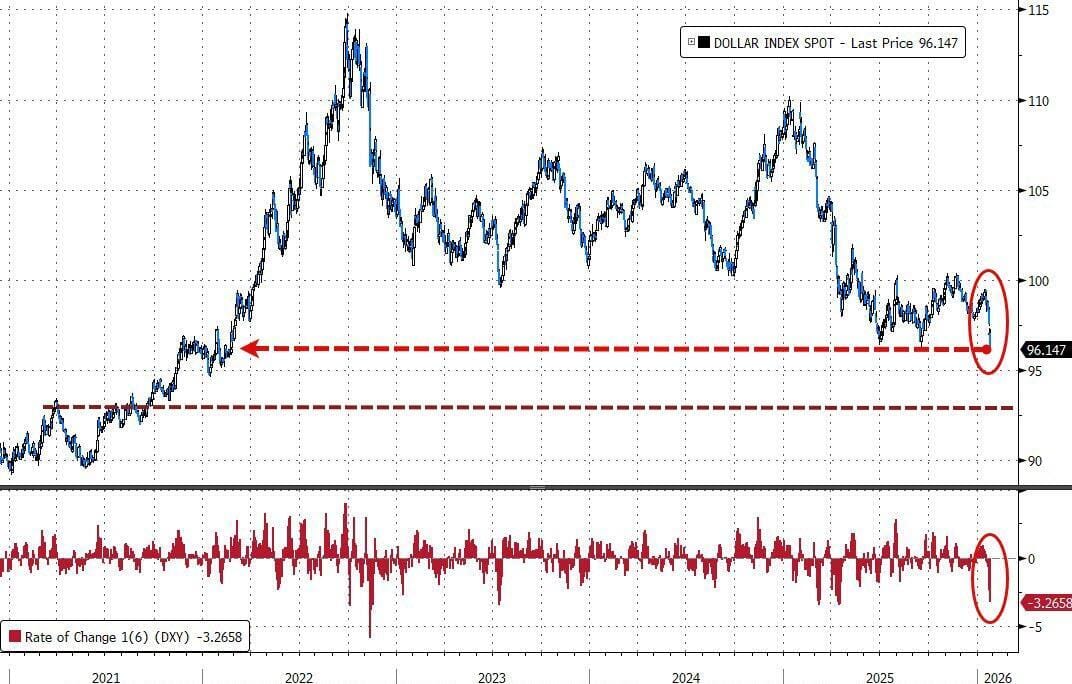El índice del dólar ha caído más del 3% en las últimas 6 sesiones de negociación (el mayor movimiento bajista en 6 días desde abril de 2025 - Día de la Liberación )...