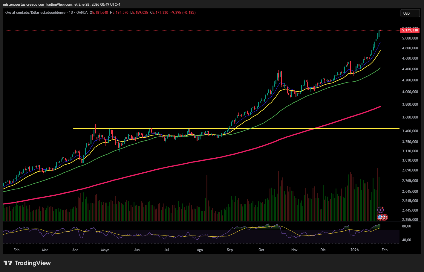 Por el lado del oro también se están viendo movimientos históricos, recientemente superando los 5.000$.