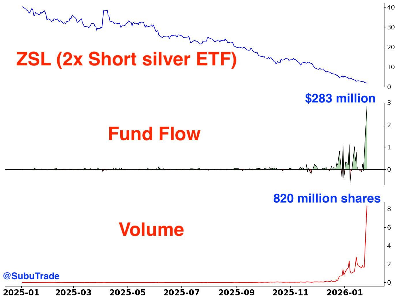 Ayer se registraron entradas récord de +$283 millones en $ZSL, el ETF de plata con 2x posiciones cortas.