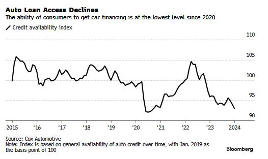 4- Nuevos datos de Cox Automotive muestran que el acceso al crédito para automóviles ha caído al nivel más bajo desde agosto de 2020. La tasa de aprobación de préstamos ha bajado un 1,6% año tras año.