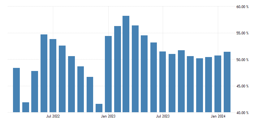 El Índice de Gerentes de Compras (PMI, por sus siglas en inglés) no manufacturero oficial del NBS para China aumentó a 51.4 en febrero de 2024 desde 50.7 el mes anterior, superando las previsiones del mercado de 50.8.