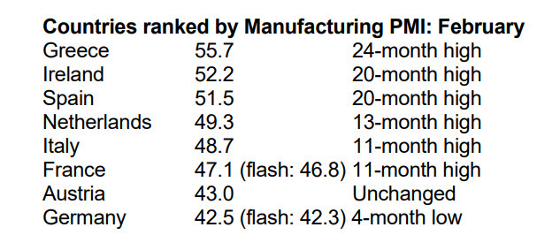 A pesar de los problemas de Alemania, el sector manufacturero de la Eurozona en general parece que recupera: