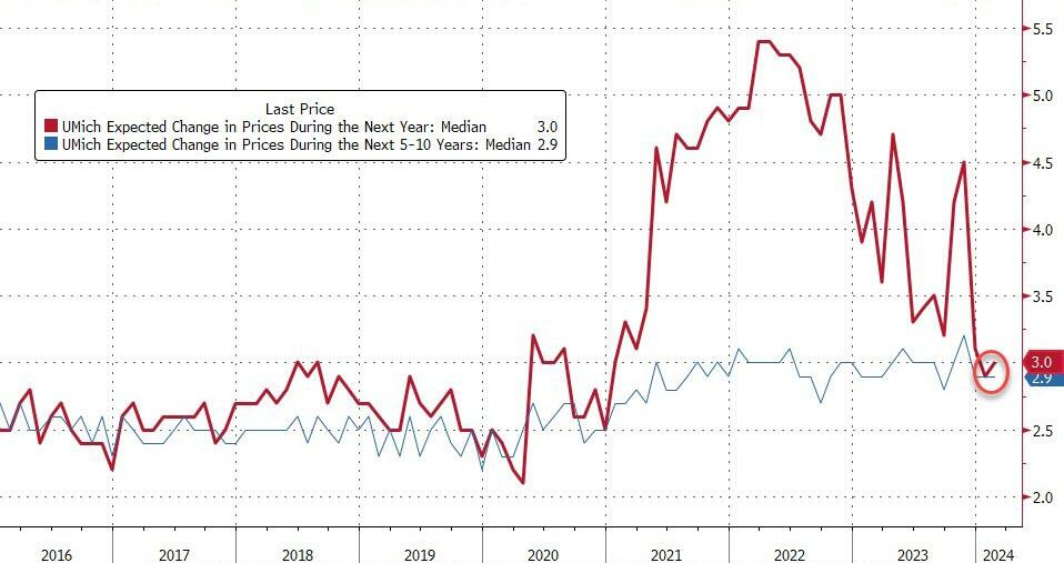 4- Las expectativas de inflación a corto plazo de la Universidad de Michigan subieron al 3%: