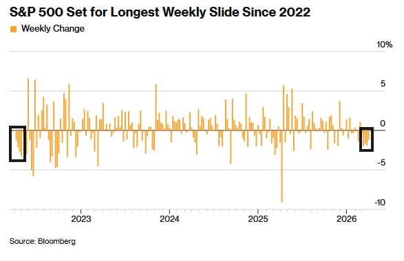 El SPX cierra u quinta semana consecutiva de pérdidas, la racha más larga desde mayo de 2022.
