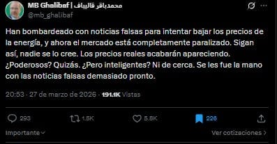 (AXIOS): El presidente del Parlamento iraní, Mohammad Bagher Ghalibaf, se perfila como una figura clave en la iniciativa de Trump para entablar conversaciones de paz con Teherán.