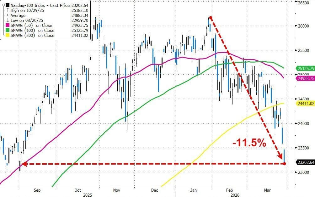 El Nasdaq se encuentra oficialmente en una fase de corrección, con una caída del 10% desde sus máximos...