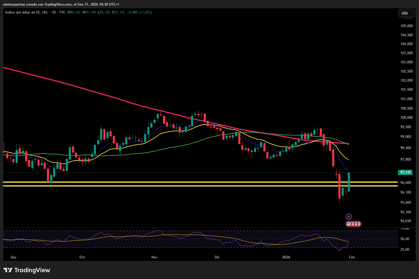 El DXY subió ante el nombramiento de Warsh, en detrimento de sus pares del G10. Ya que dentro de las opciones, parece el hombre “más de mercado” y que menos puede poner en riesgo la independencia de la Fed.