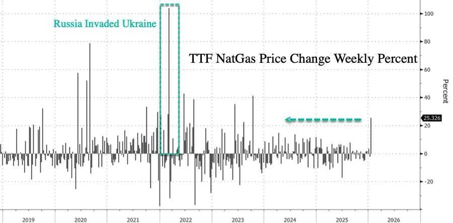 Los futuros de gas natural TTF holandés, el contrato de gas de referencia en Europa, subieron un 25% en la semana y van camino de su mayor ganancia semanal desde octubre de 2023. Este abrupto cambio de sentimiento refleja el ajuste de los niveles de almacenamiento, las coberturas de posiciones cortas y un estallido de clima inusualmente frío que azota el continente.