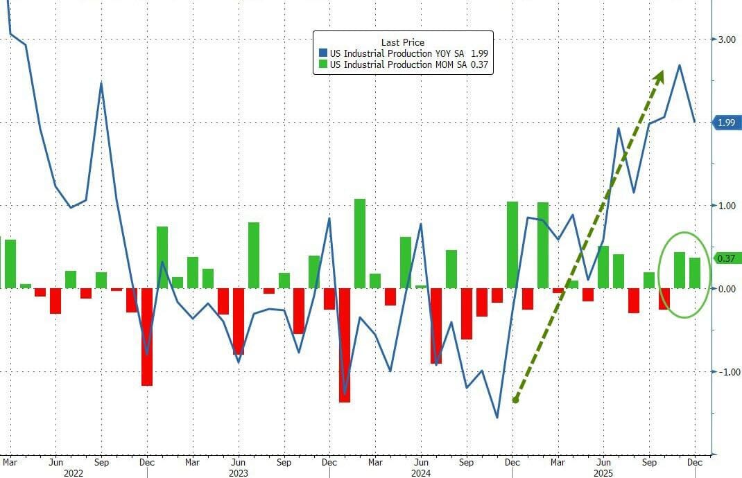 La producción industrial cerró 2025 con un buen resultado, con un aumento intermensual del 0,4 % en diciembre (considerablemente mejor que el +0,1 % intermensual esperado), que complementó el aumento intermensual del 0,4 % de noviembre. Esto elevó la producción industrial un 2 % interanual.