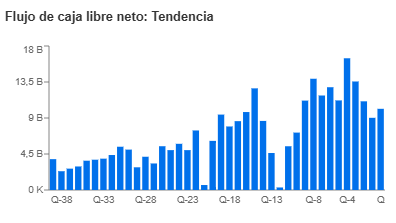 Meta, siendo una empresa con enorme generación de caja libre (FCF de 10.600 millones en el último trimestre) y 44.400 millones en efectivo.