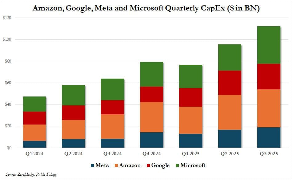 Uniendo a las 4 grandes compañías, el CAPEX en el tercer trimestre ascendió a la cifra récord de 112.000 millones de dólares: