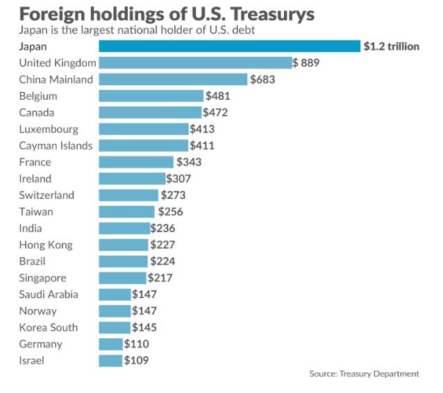Japón posee más de 1,2 billones de dólares en bonos del Tesoro de EE. UU.