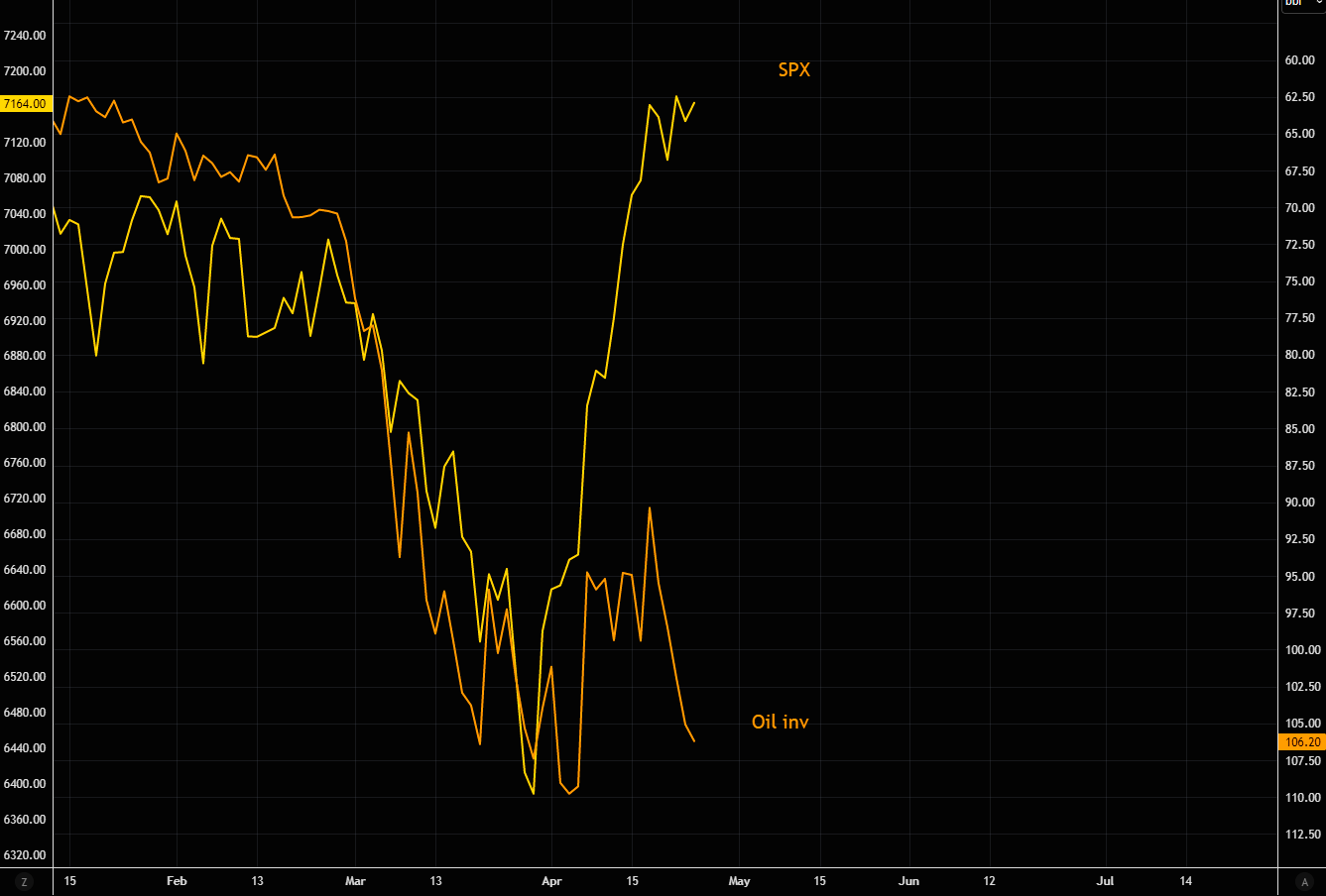 Pero la evolución del petróleo da demasiado miedo… La diferencia entre el petróleo (invertido) y el SPX sigue ampliándose.