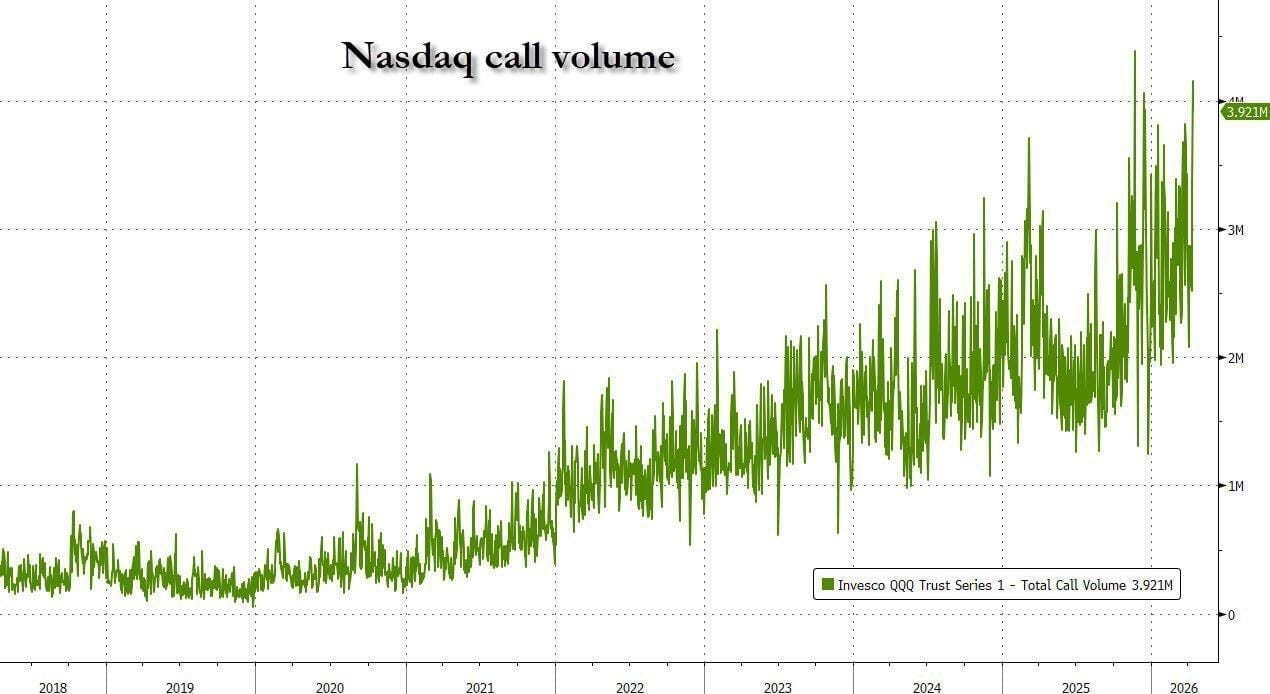 Véase el volumen de opciones de compra de QQQ, que está cerca de alcanzar un récord...