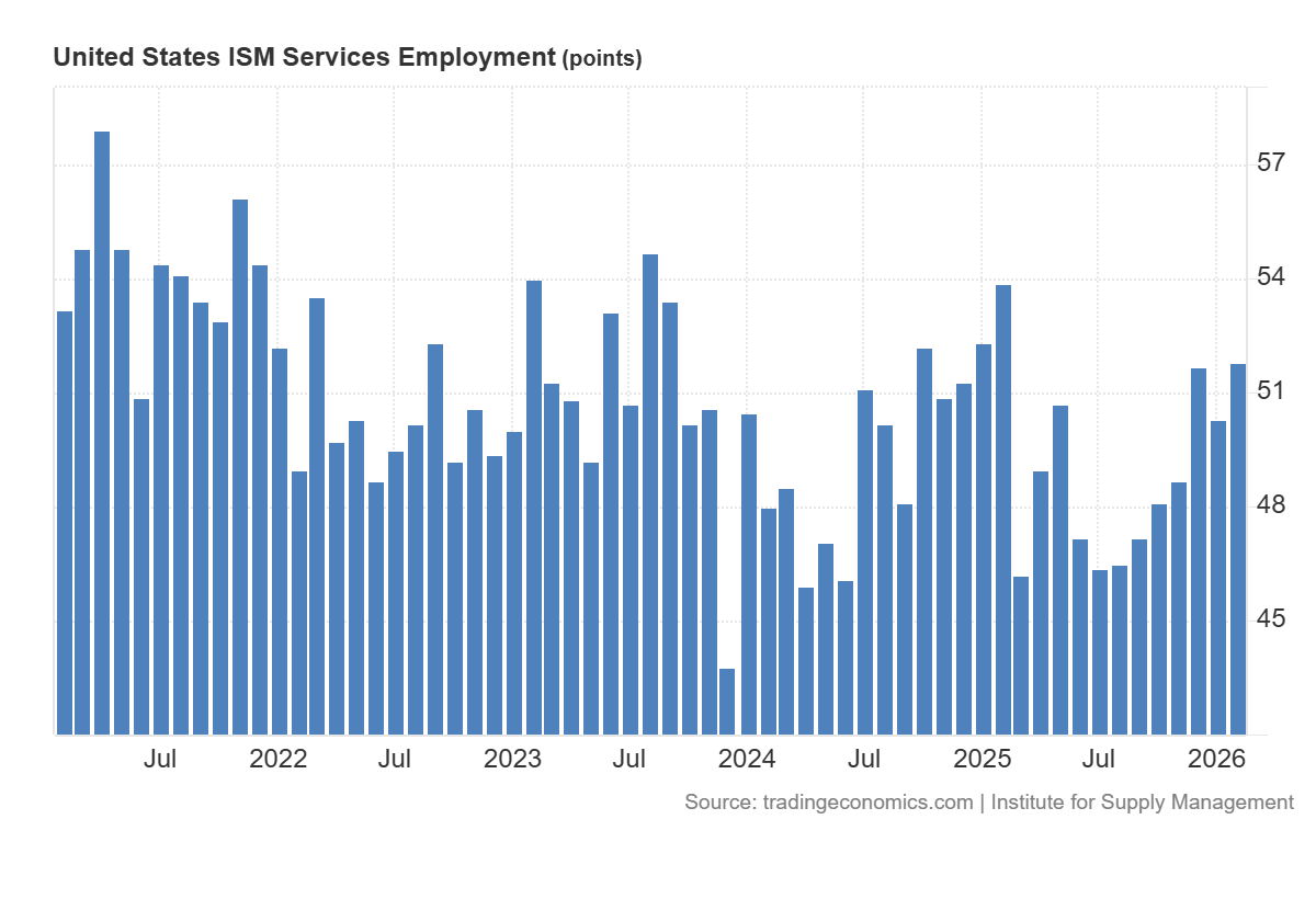 El PMI de servicios del ISM de EE. UU. subió a 56,1 en febrero de 2026, desde 53,8 en enero, superando las expectativas del mercado de 53,5 y marcando la expansión más rápida del sector desde agosto de 2022.