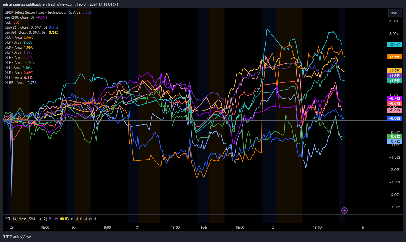 YA que no solo fue la tecnología y los servicios de comunicación lo que lideró la semana, consumo discrecional, defensivo e indurstial tuvieron también una extraordinaria semana.