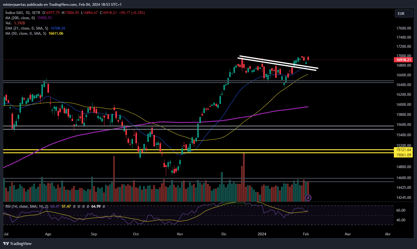 Las ganancias de los resultados corporativos optimistas compensaron la narrativa tipos altos por más tiempo (será raro que el BCE baje los tipos antes que la Fed).